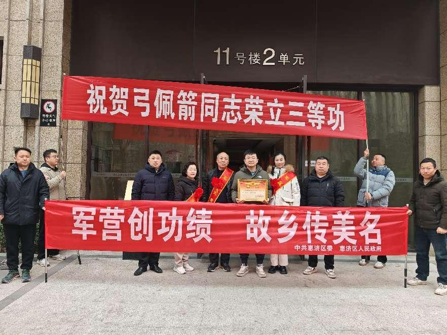 2月10日,惠济区退役军人服务中心组织慰问组,走访慰问了辖区内荣立三等功的现役军人及军人家属,为他们送去喜报、慰问金和新春的美好祝福,让“一人立功、全家光荣”的崇军风尚浸润人心。